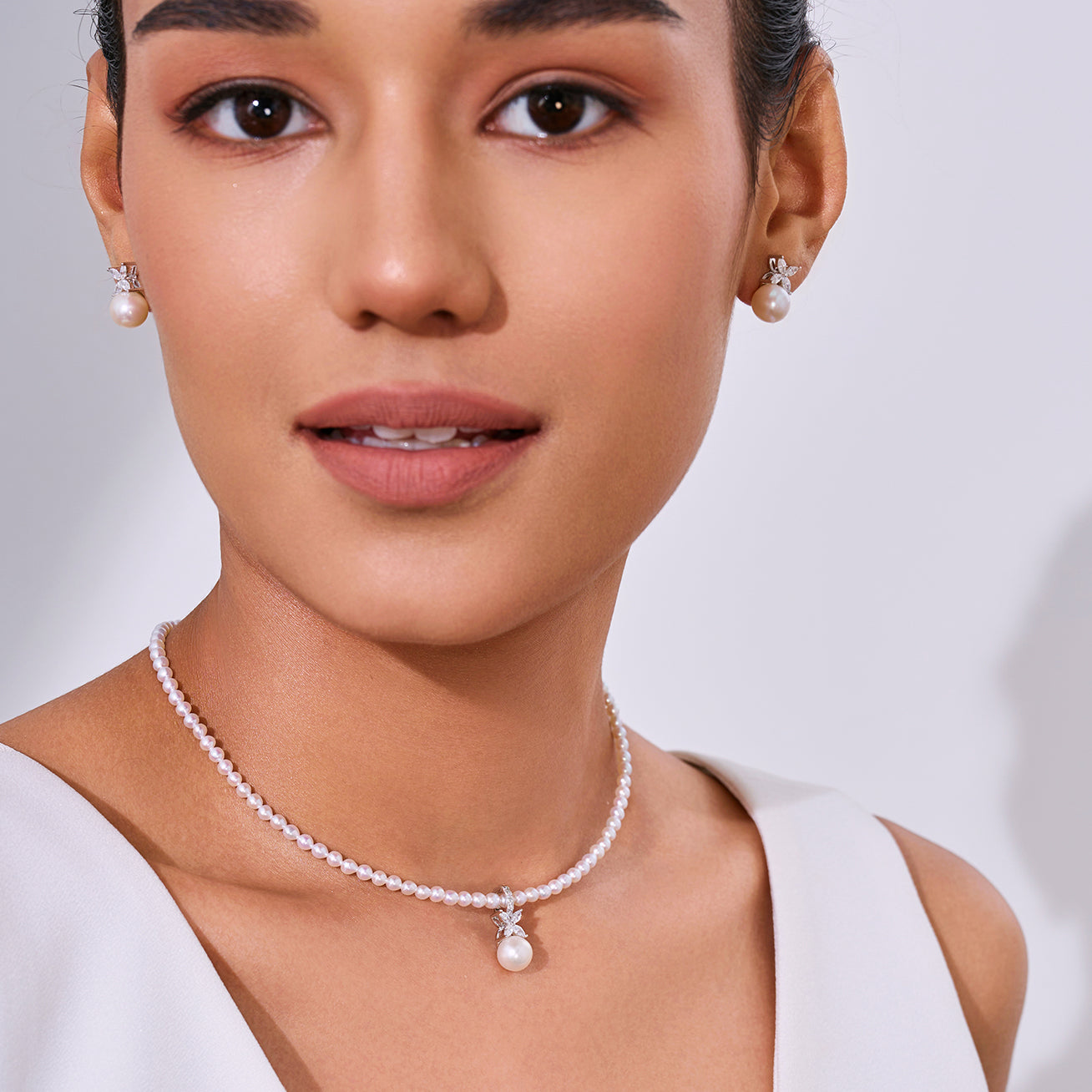 顶级淡水珍珠项链和耳环套装 WS00111 | EVERLEAF