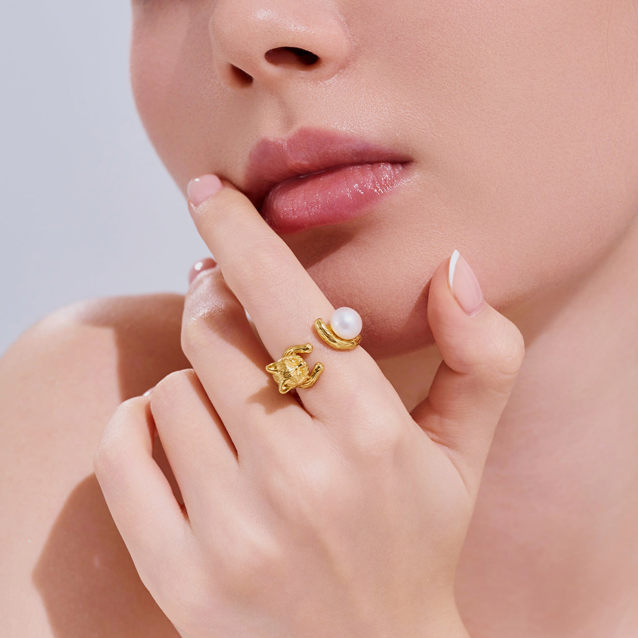这款完美的淡水珍珠戒指是专为所有猫咪爱好者设计的!一颗白色的淡水珍珠被一只手工制作的猫形环抱。是一件永恒的珠宝,展现个性、喵声与永恒的爱……