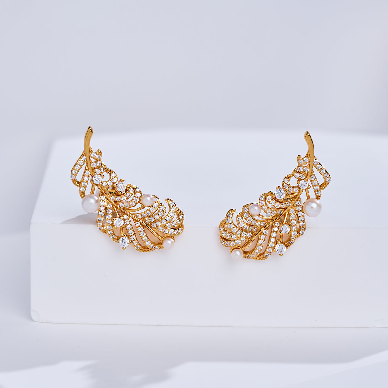 顶级淡水珍珠耳环 WE01021 | FEATHER
