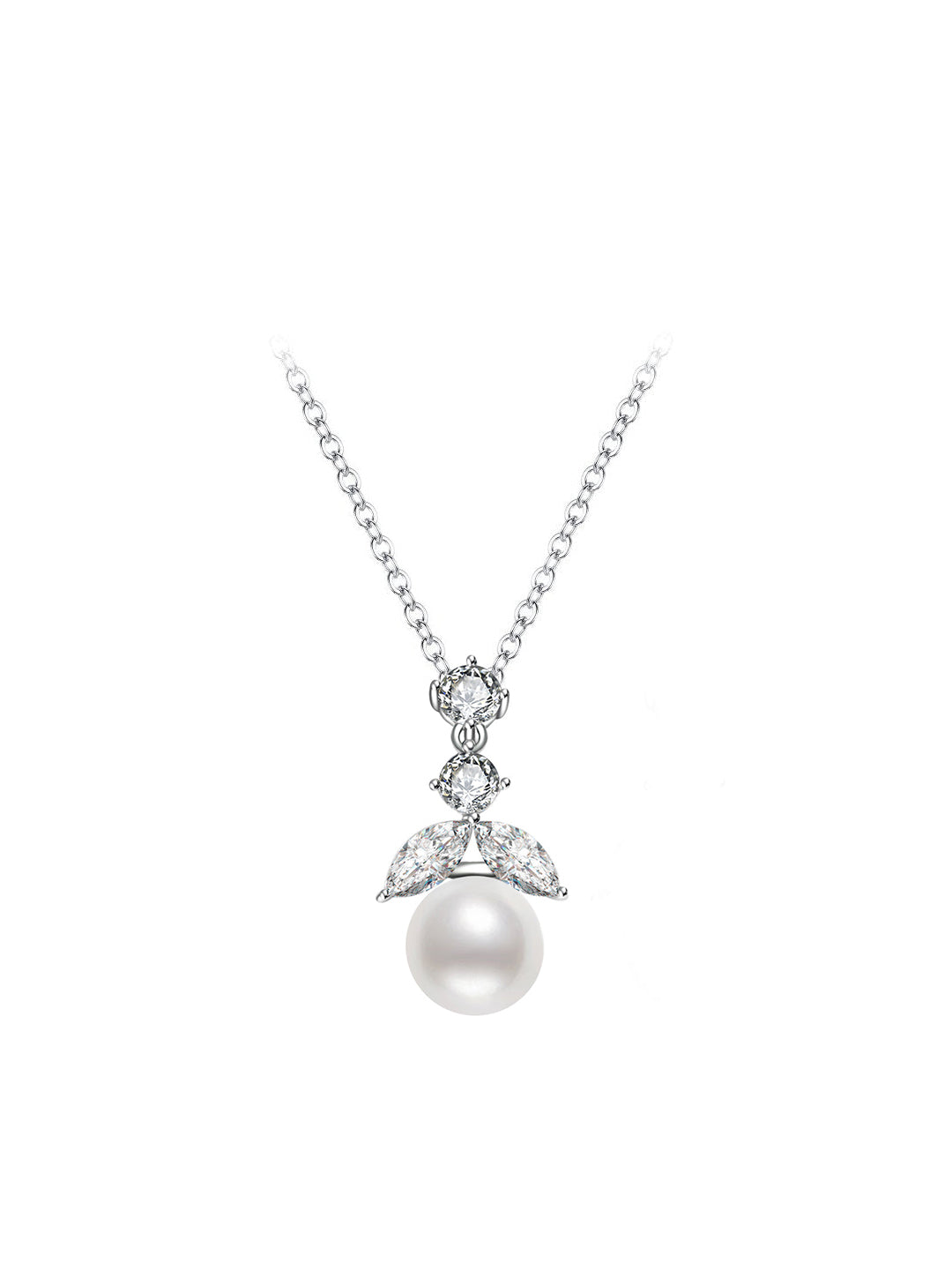 这款珍珠项链时尚感十足!搭配两颗适中大小的立方氧化锆和一颗适中大小的淡水珍珠,组合成一款水滴形吊坠,经典且华丽。适合成熟优雅的女性佩戴。