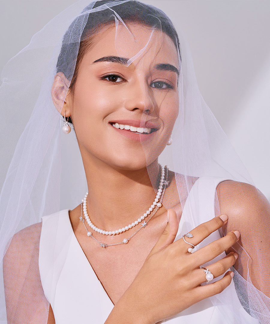 顶级淡水珍珠项链和耳环套装 WS00111 | EVERLEAF