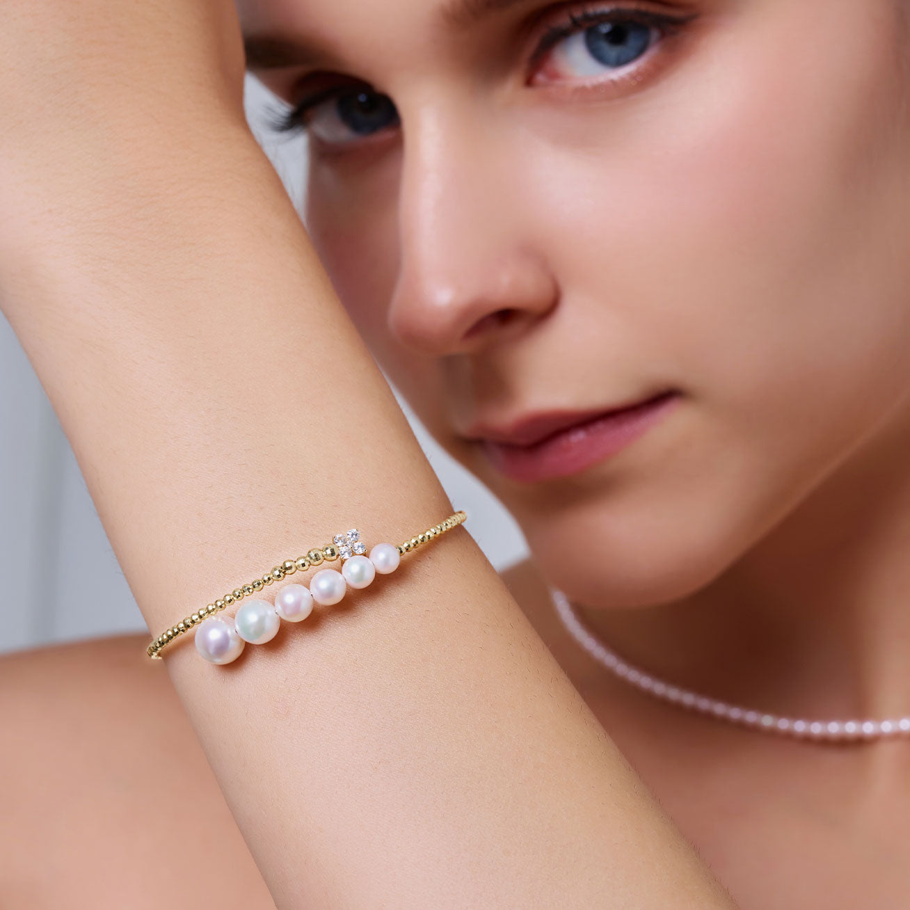 用这款无限淡水珍珠手链优雅点缀您的每一天。完美的配饰,衬托您的气质。双珍珠端饰设计,手腕尺寸可调节。多功能且精致,轻松搭配任何日夜装扮。