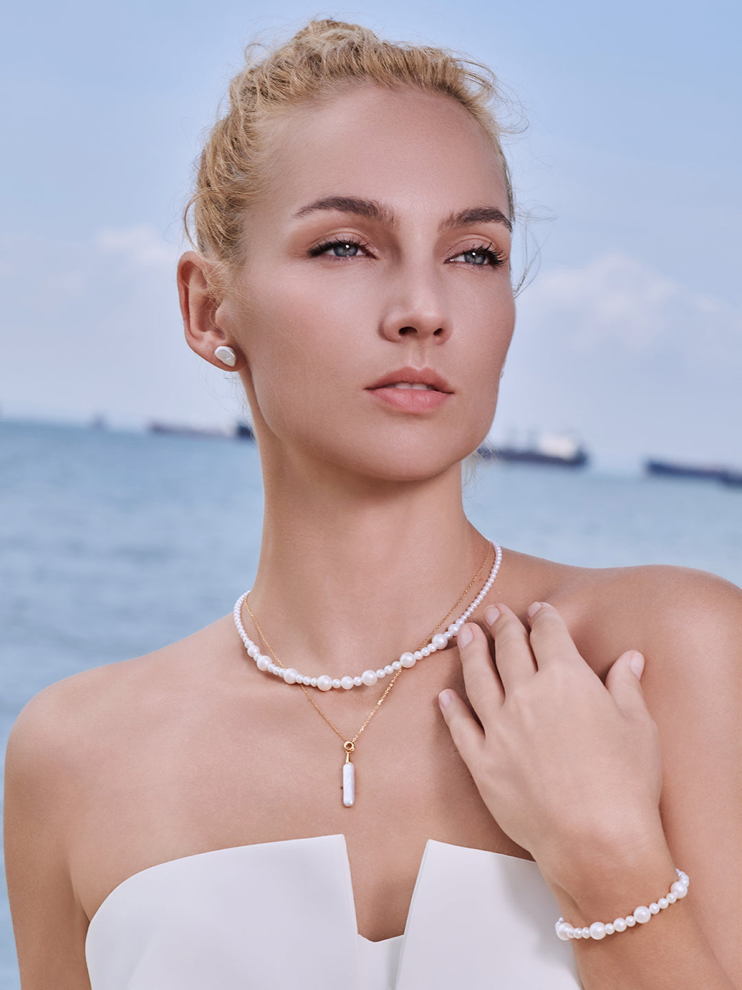 每次佩戴后,请使用宝丽莱斯银饰抛光布擦拭您的珍珠首饰,因为汗水和皮肤油脂呈酸性,可能会影响珍珠首饰的光泽。详情请见 更多