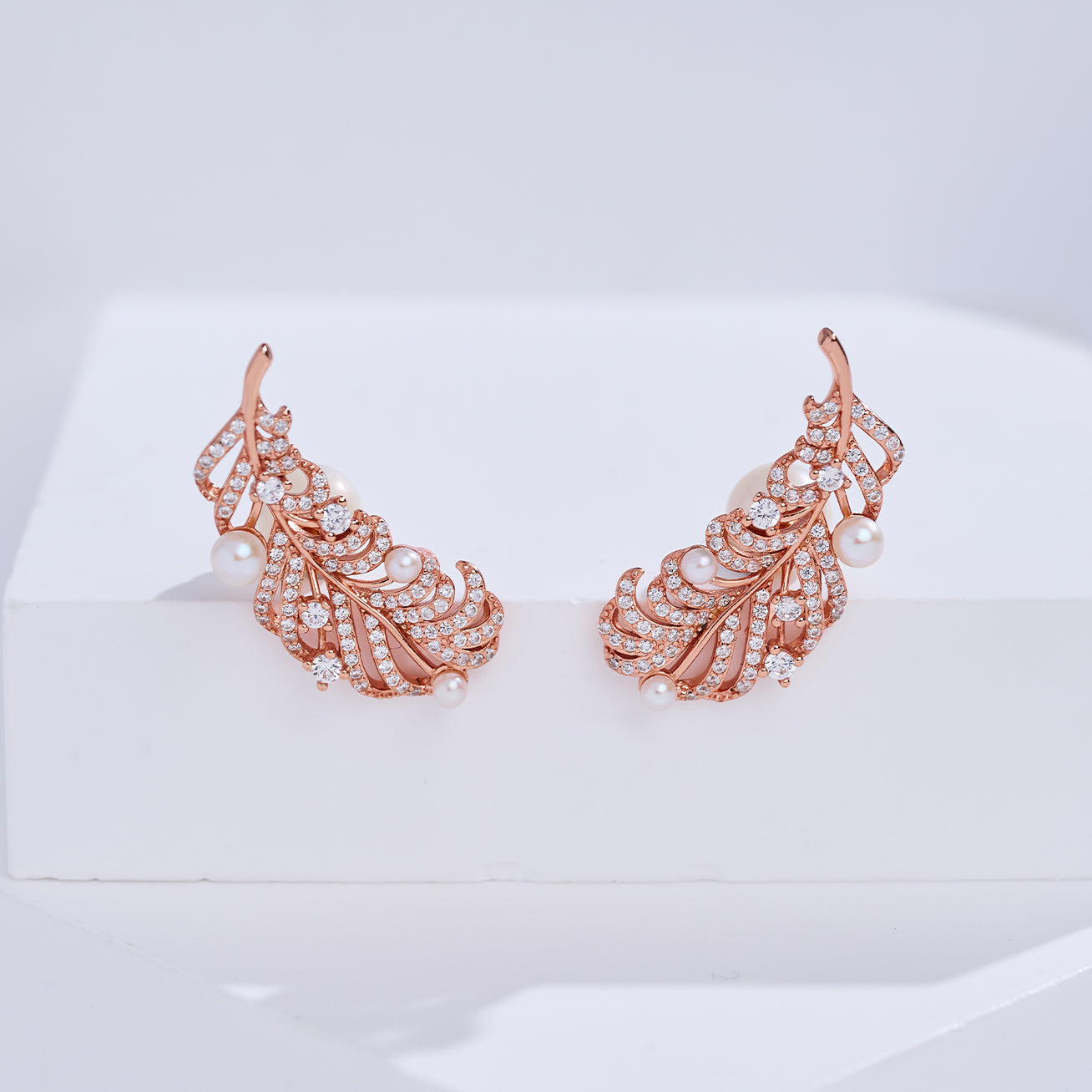 顶级淡水珍珠耳环 WE01035 | 羽毛