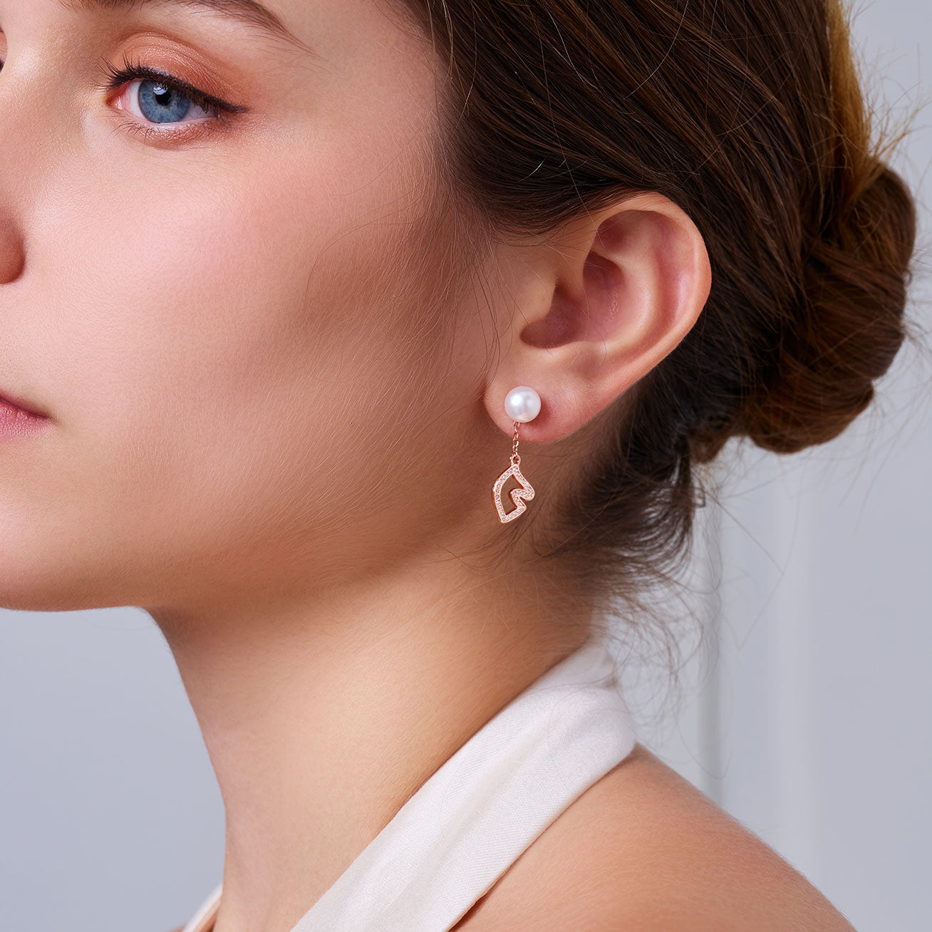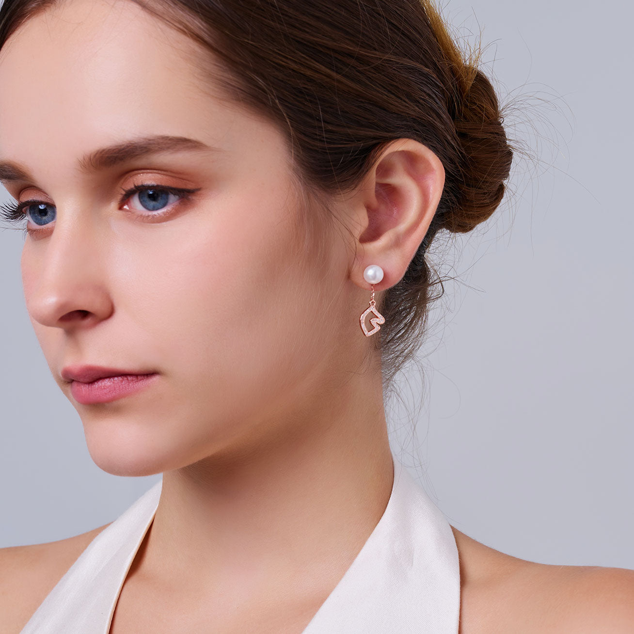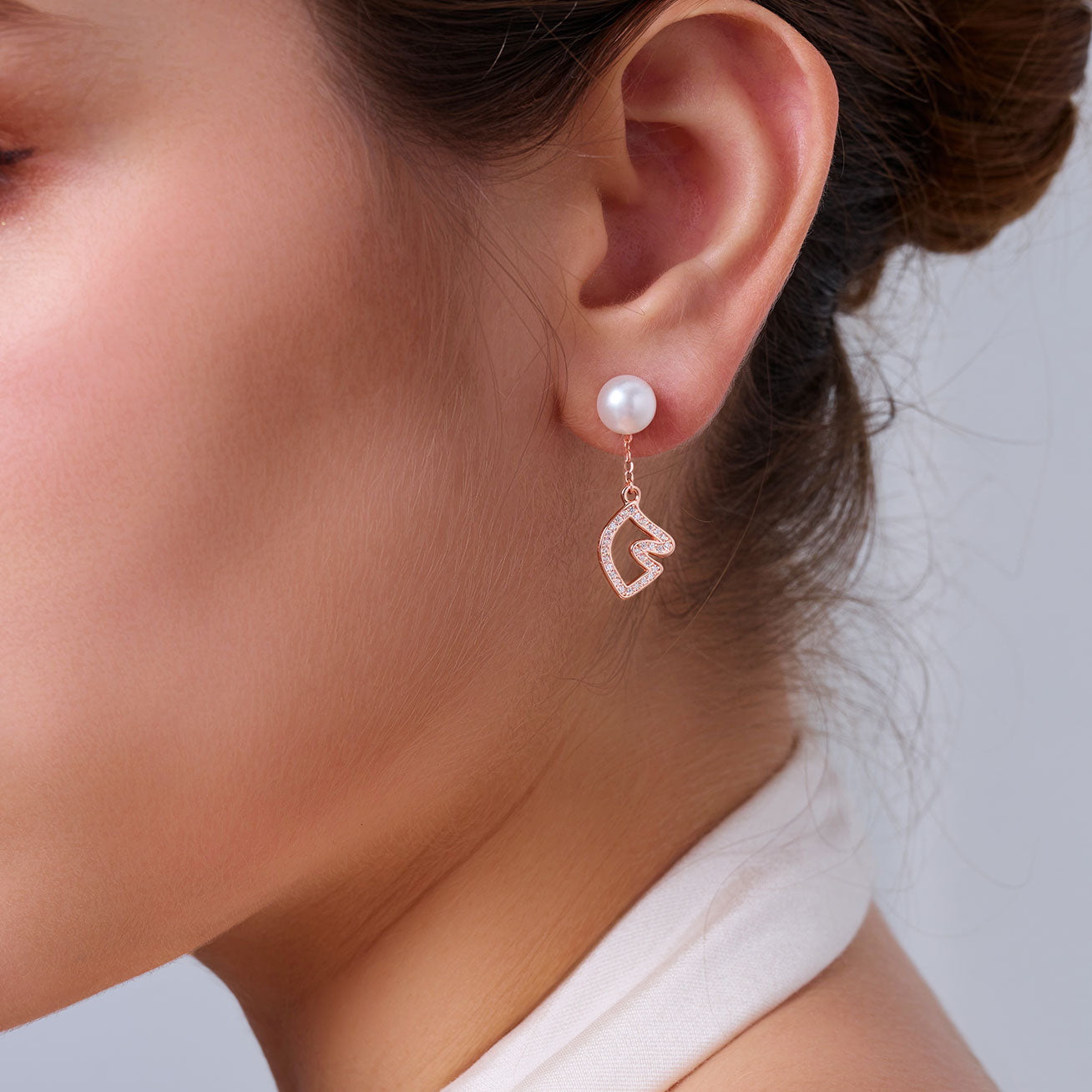 Top Grade Freshwater Pearl Earrings WE00982 | HORSE - PEARLY LUSTRE