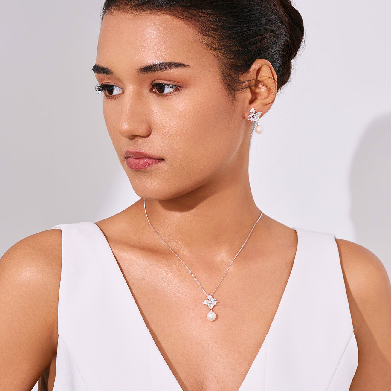 為了與您一樣珍貴,這款來自優雅系列的淡水珍珠項鍊擁有閃耀的特質,襯托您的氣質。鑲嵌立方氧化鋯和珍貴寶石,珍珠增添柔和的觸感,讓您隨時更加迷人。非常適合婚禮或派對之夜佩戴。