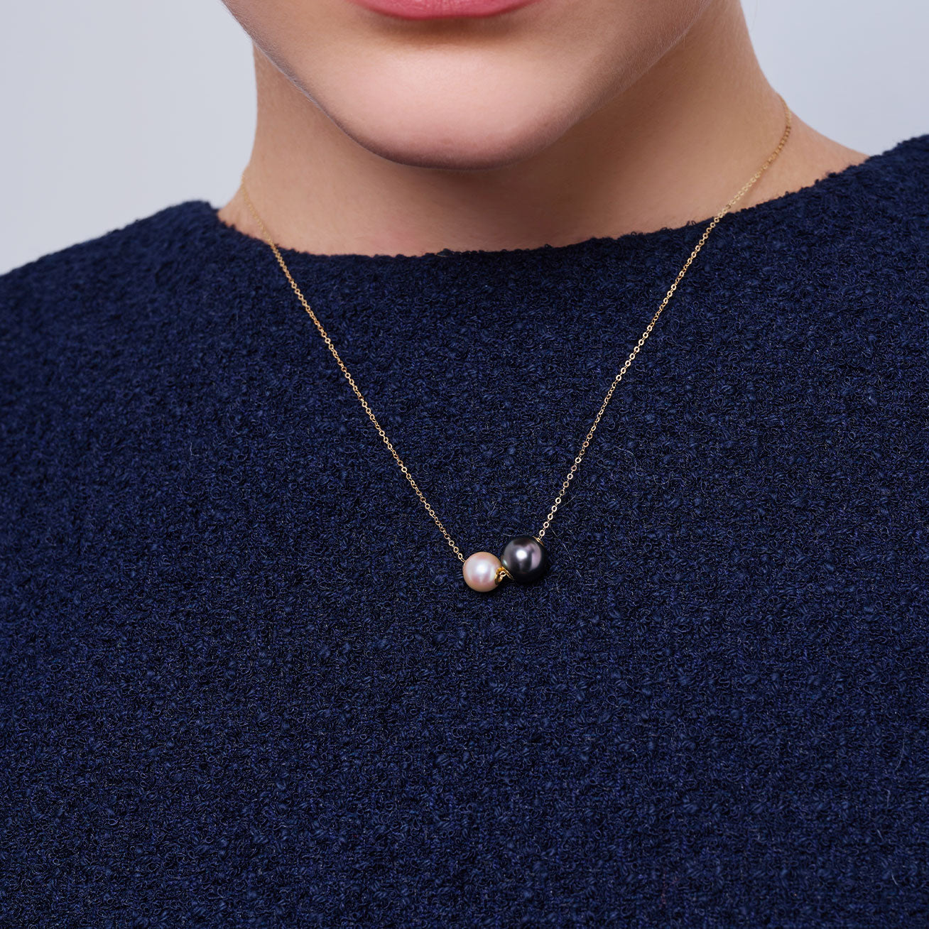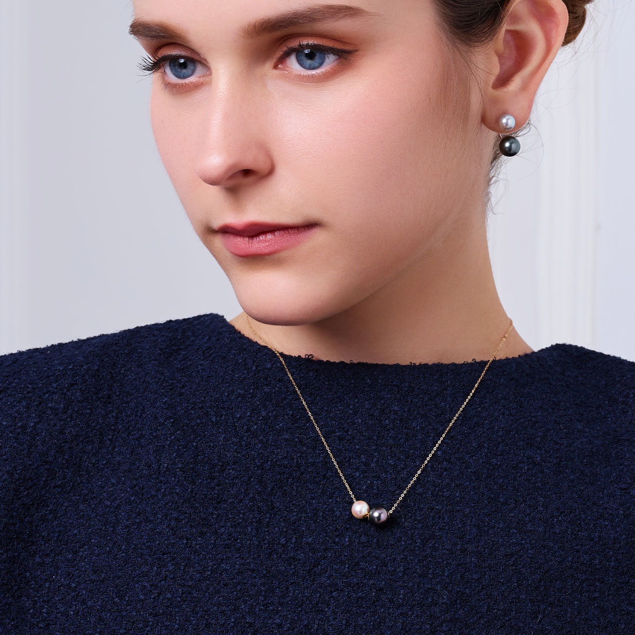 18K Solid Gold Akoya and Tahitian Pearl Necklace KN00371 | HARMONY - PEARLY LUSTRE