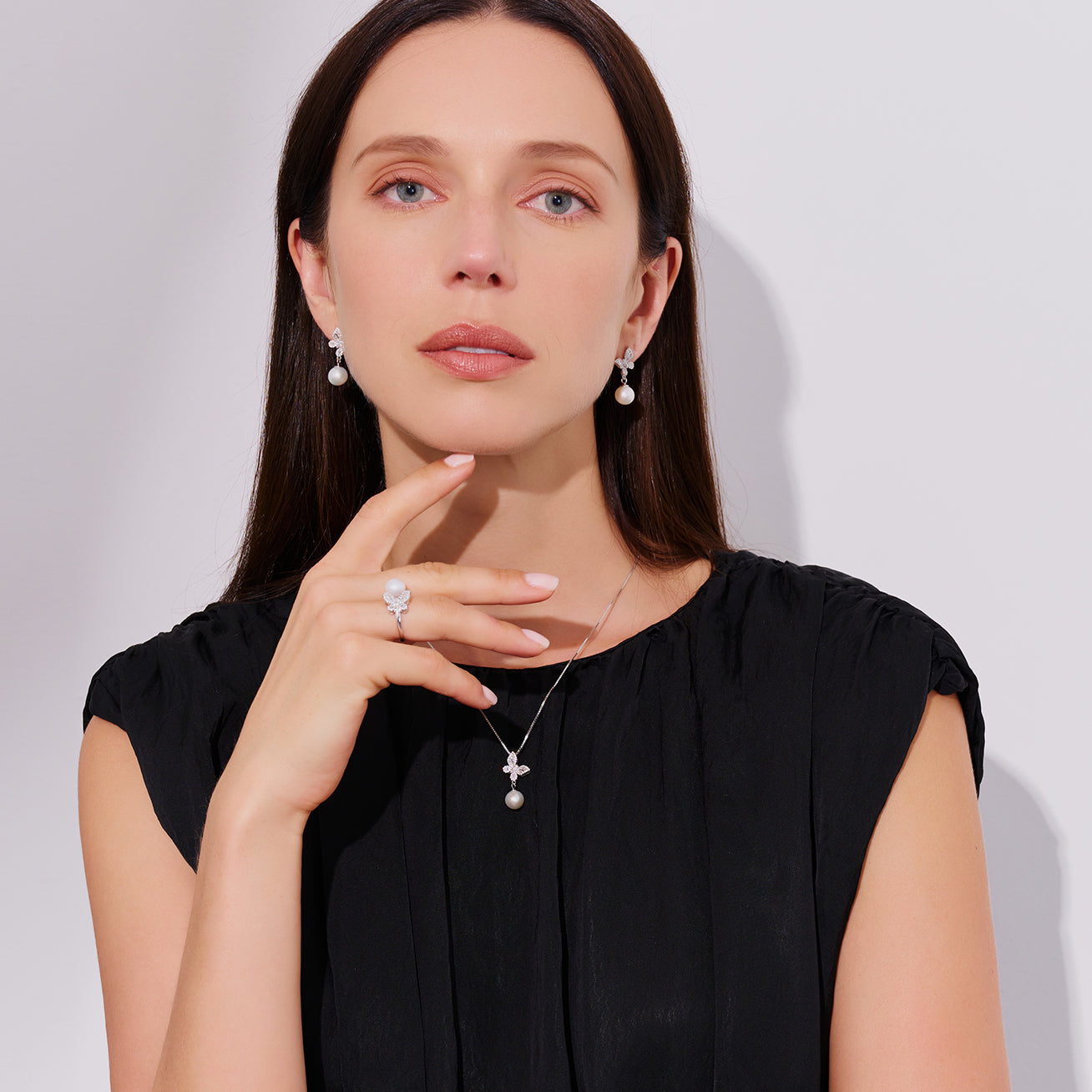 精緻的蝴蝶托起一顆溫柔的淡水珍珠滴。