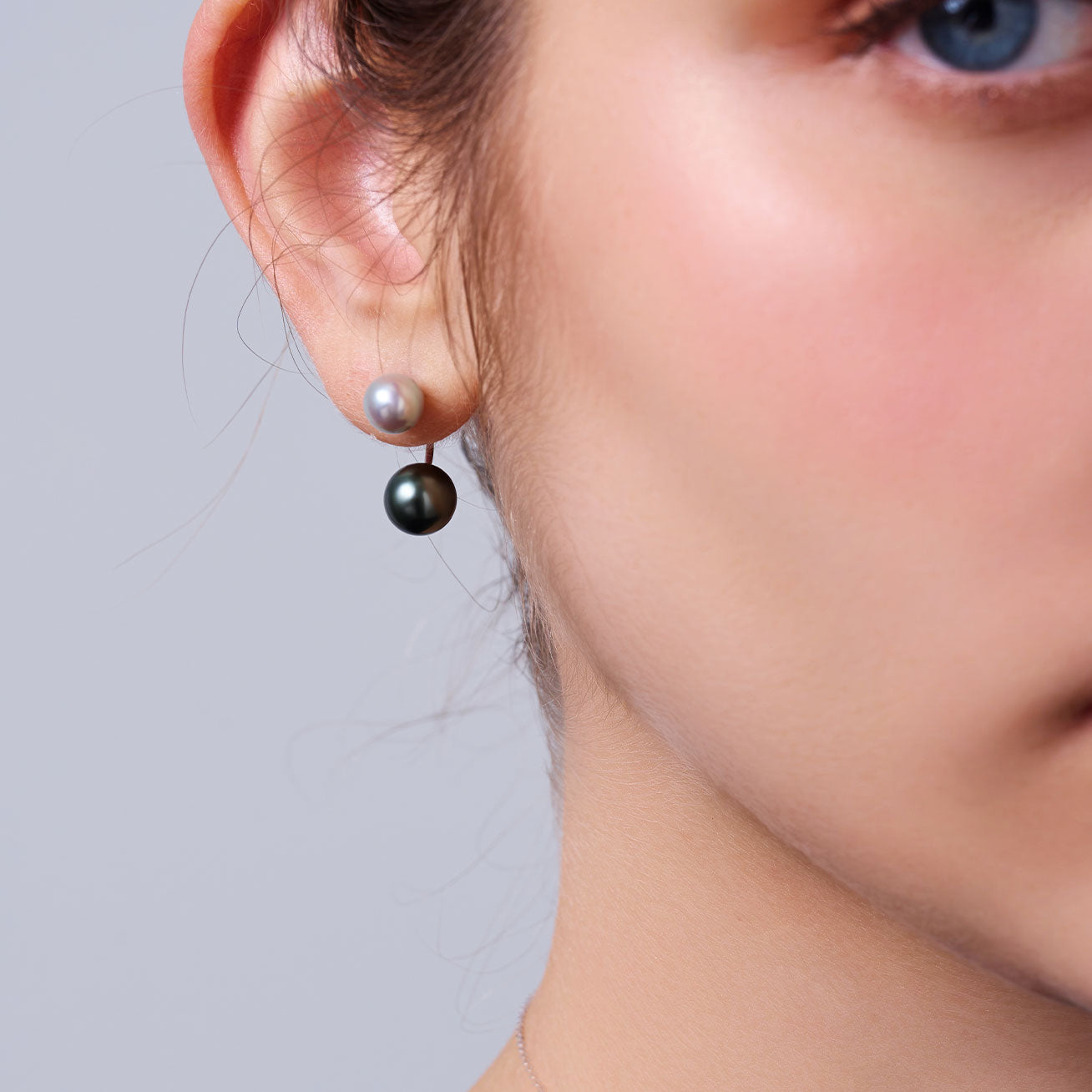 18K Tahitian & Madama Pearl Earrings KE00295 | HARMONY - PEARLY LUSTRE