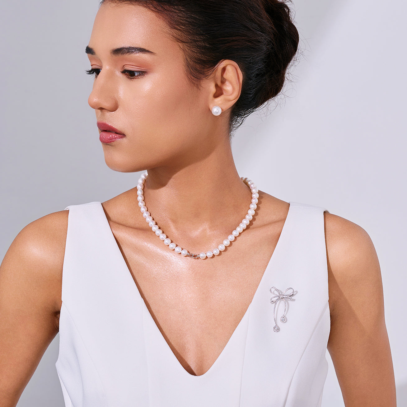 18K金淡水珍珠項鍊與胸針 KN00019 | RIBBON