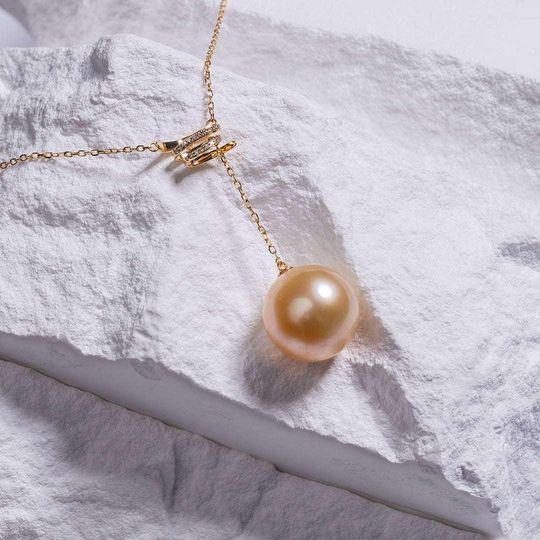 佩戴我们独特的 13-14 毫米金色南洋珍珠项链,搭配一颗闪闪发光的钻石,尽享奢华之美。其独特、时尚的设计彰显您的精致风格,散发出庄严和优雅。
