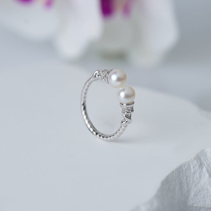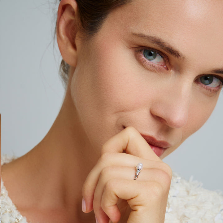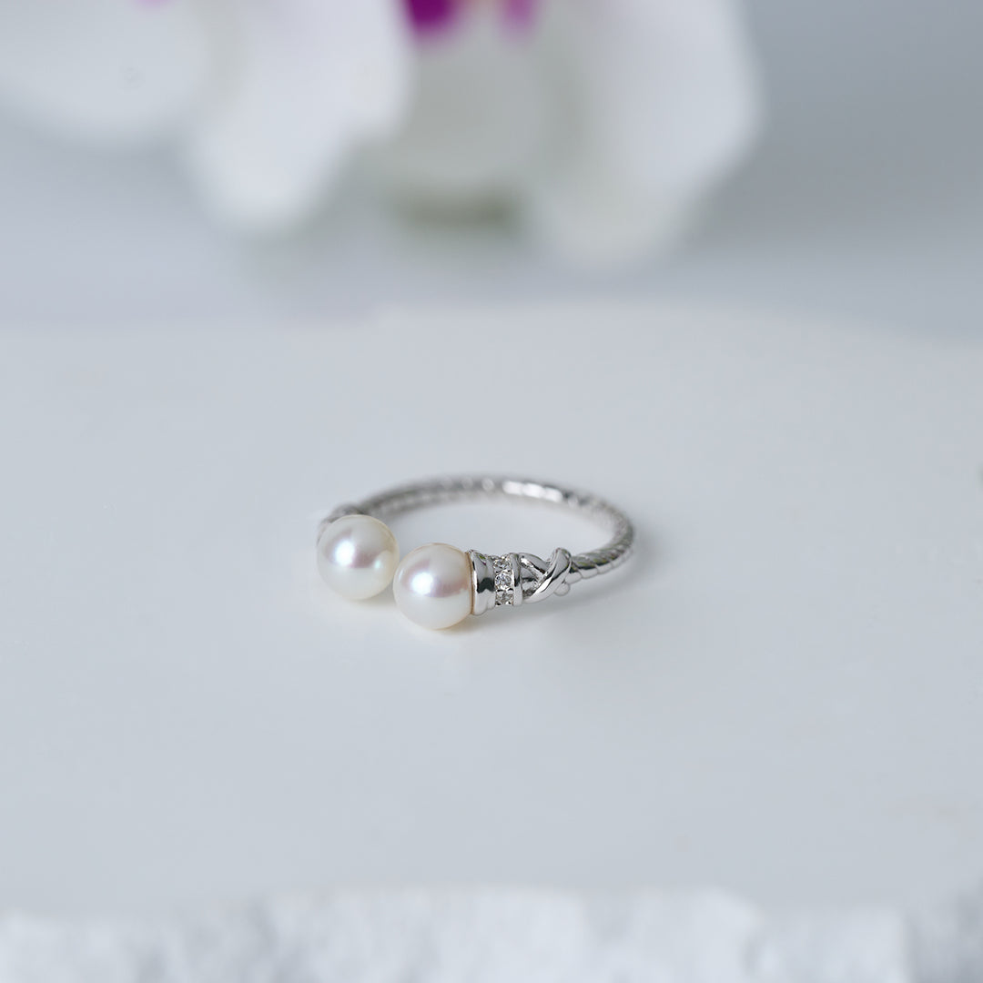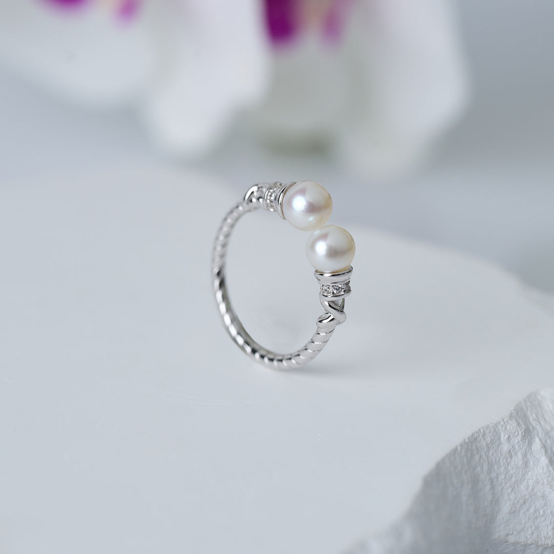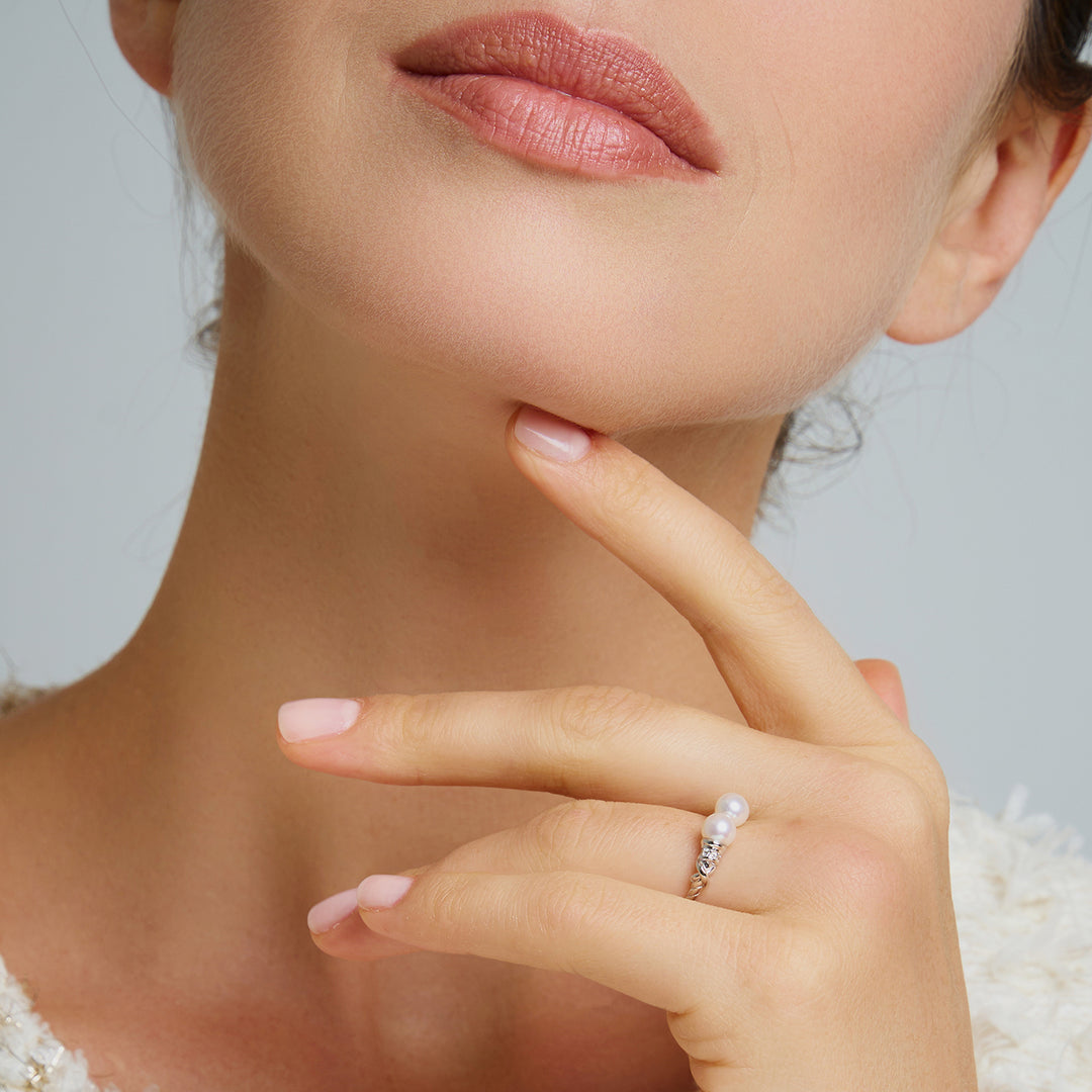 这款珍珠戒指是最受欢迎的款式之一。流线型的螺旋形状搭配光泽感十足的珍珠,经典且易于搭配。单独佩戴或叠戴均可。