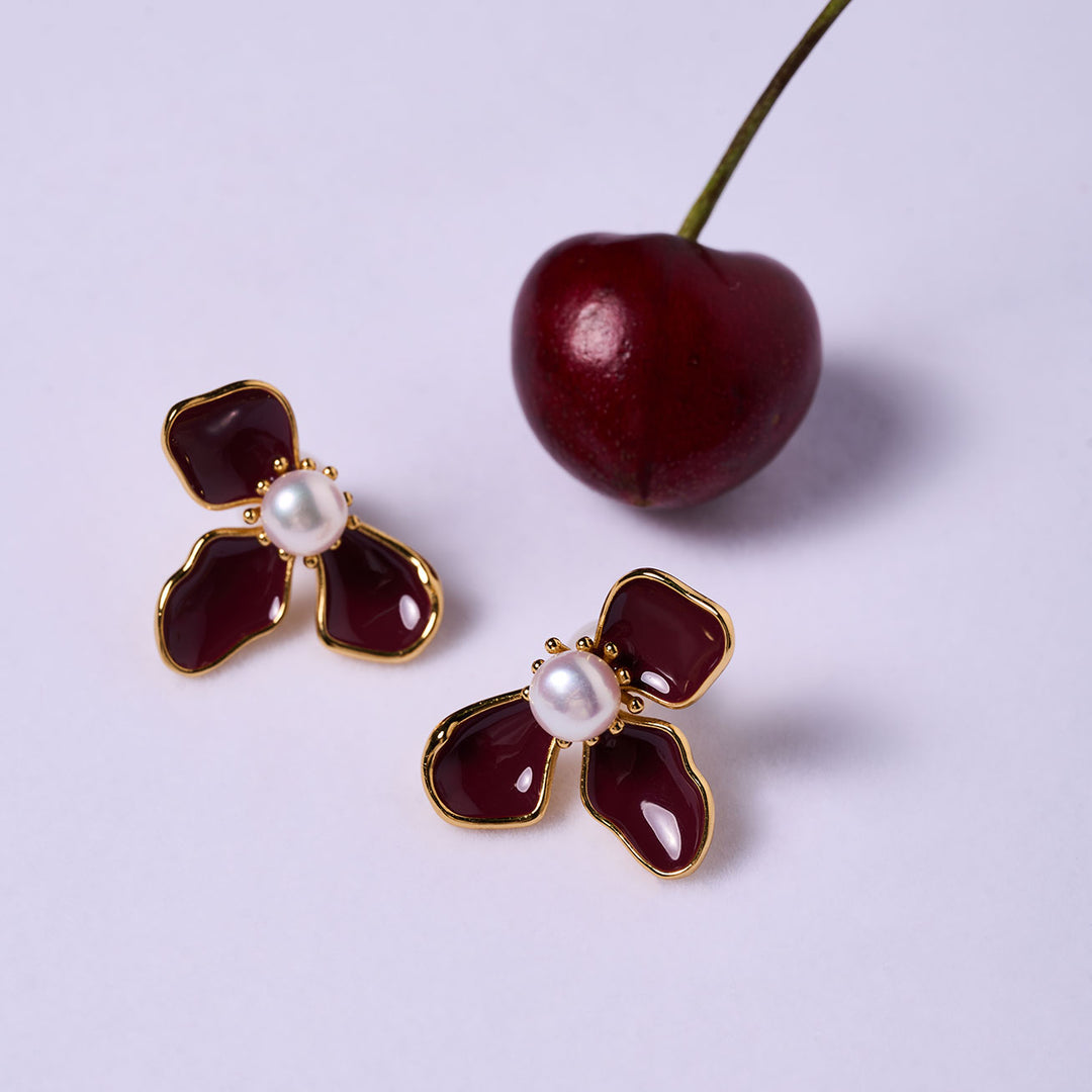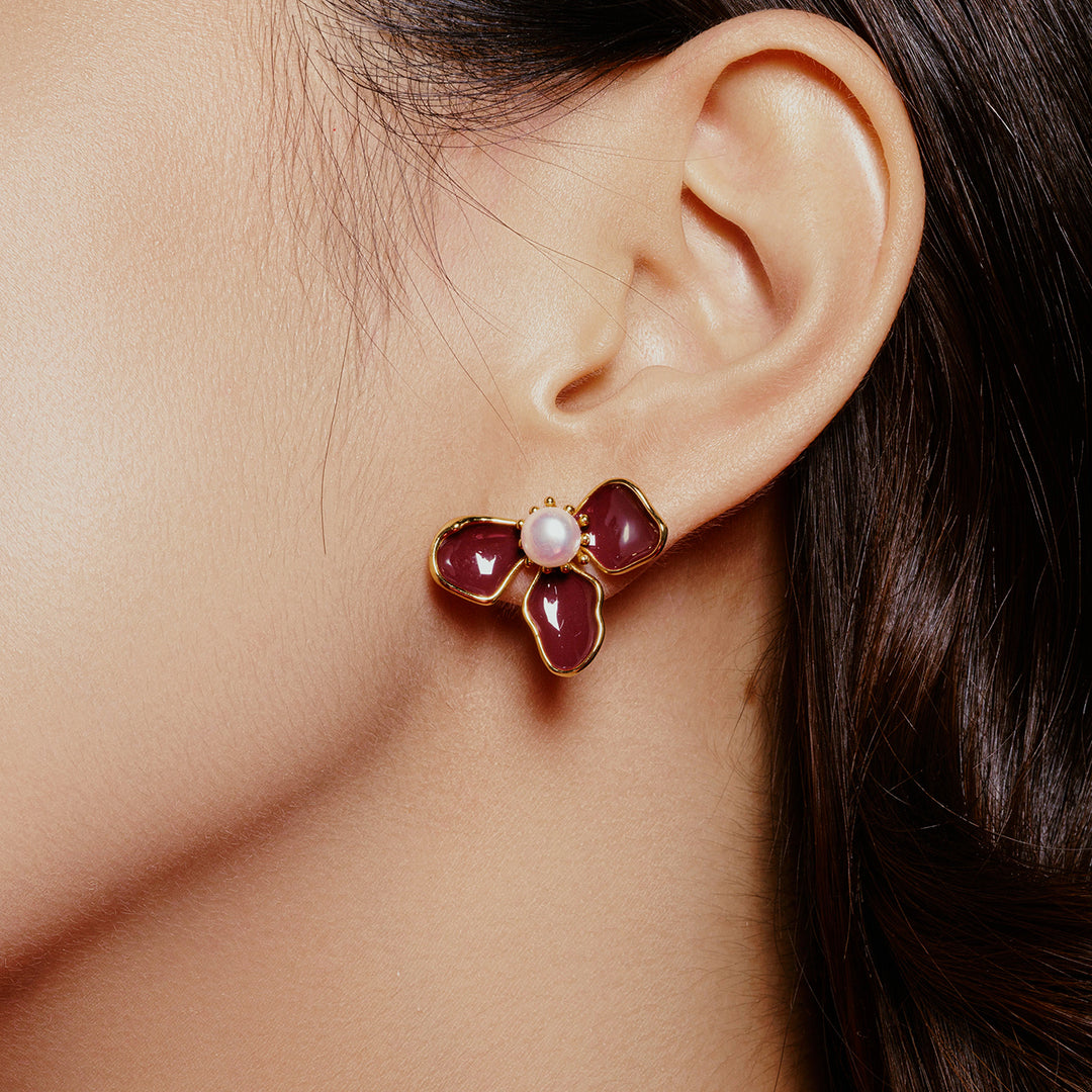 顶级淡水珍珠耳环 WE00840 | 兰花