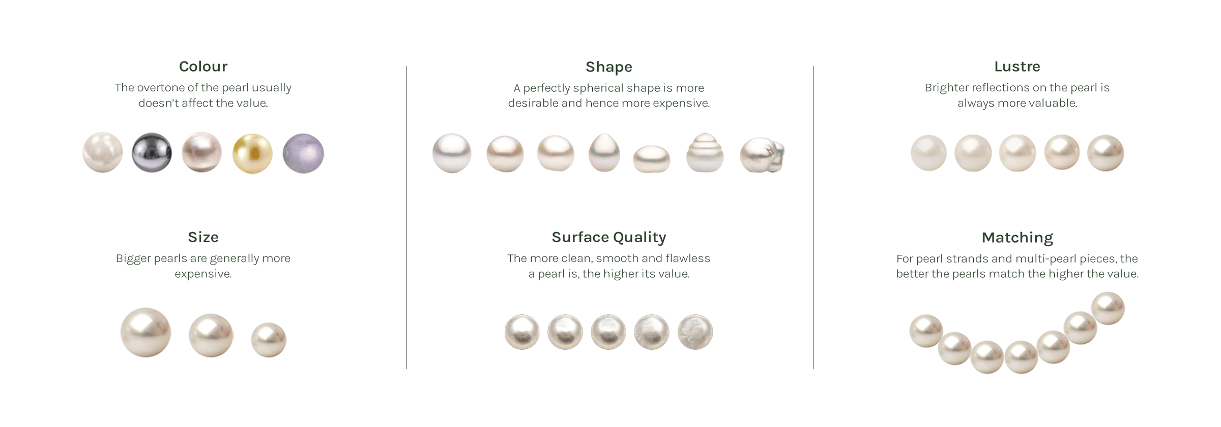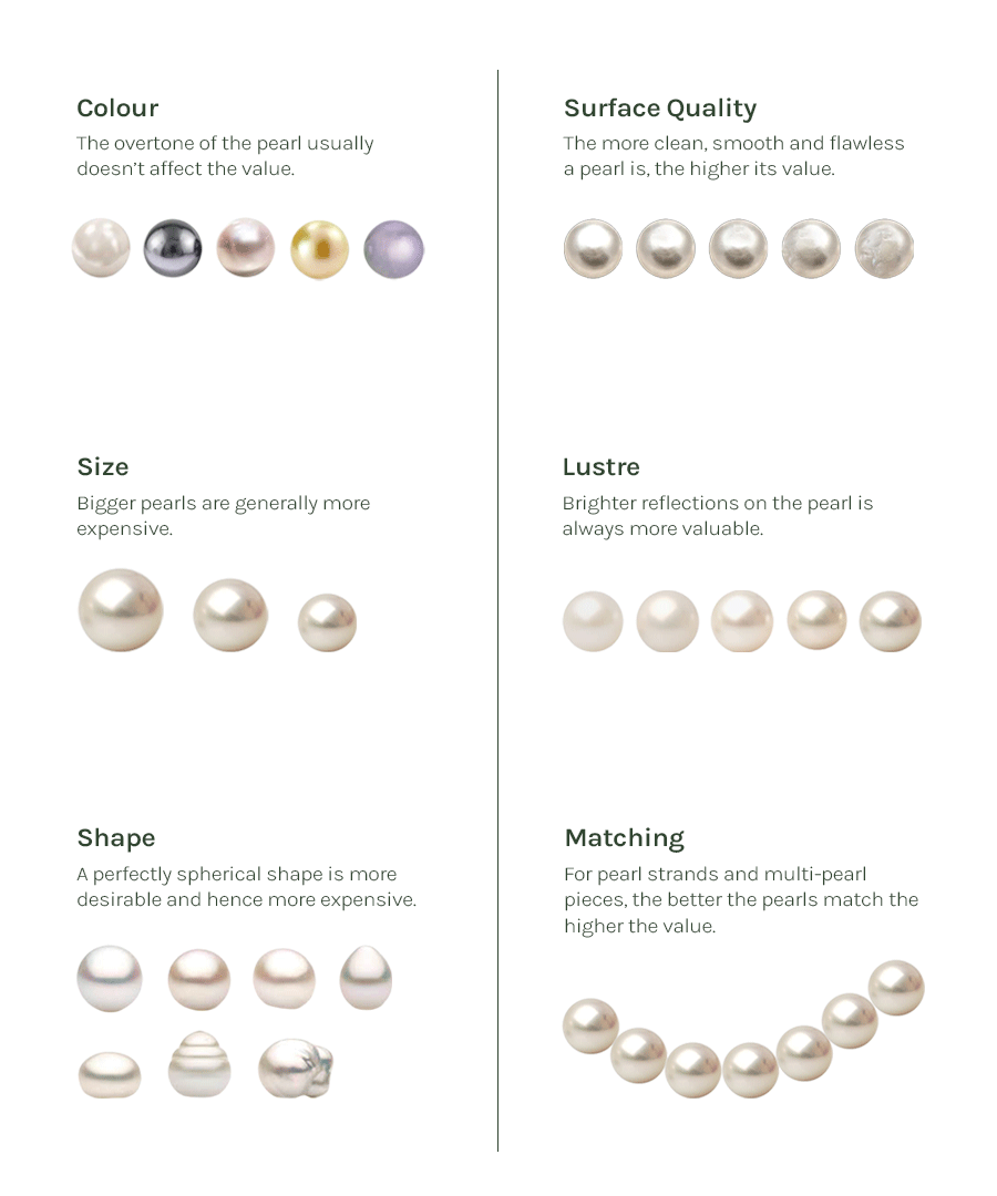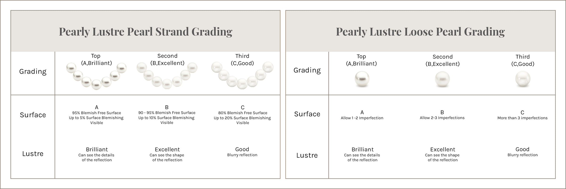Pearly Lustre 使用的质量标准高于美国宝石学院(GIA)和日本珍珠科学实验室(PSL)的珍珠分级系统。