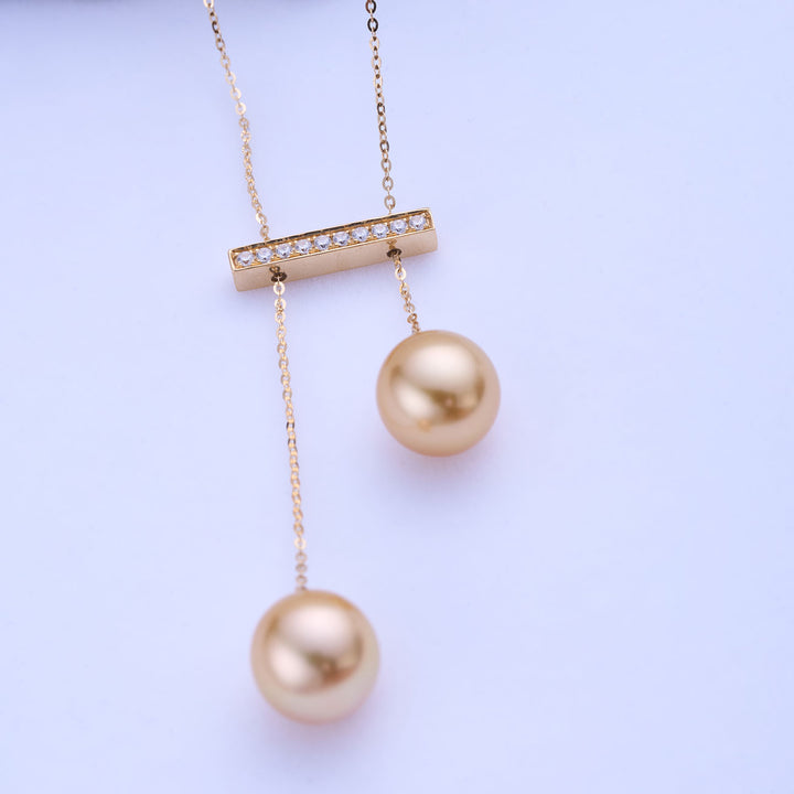 18K Solid Gold South Sea Golden Pearl Necklace KN00282 - PEARLY LUSTRE