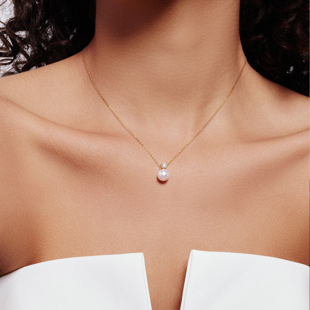 这一经典设计采用了耀眼的钻石,搭配来自日本的优质Akoya 珍珠。如果您在寻找一件即使在20年后仍然优雅且时尚的作品,这就是完美的选择。