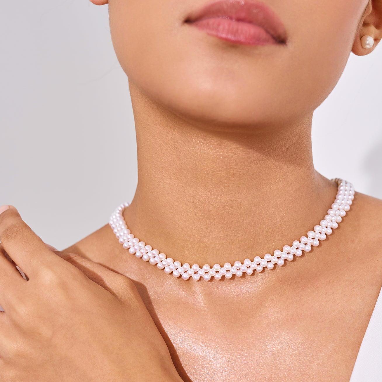 这款手工制作的珍珠项链和手链套装完美贴合颈部,搭配黑色上衣效果极佳,展现优雅迷人的风采。非常适合下午茶或正式场合,助您轻松脱颖而出。