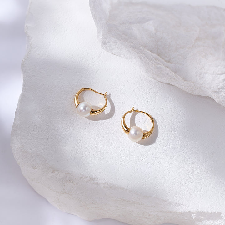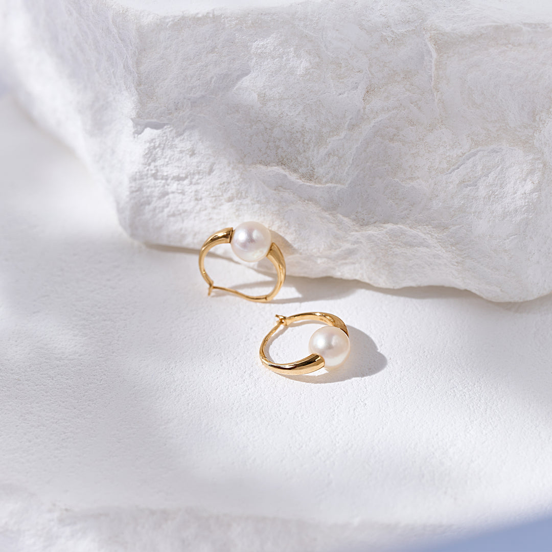 18K Solid Gold Akoya  Pearl Earrings KE00268 - PEARLY LUSTRE